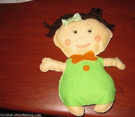 من و دخترم با کمک هم یه عروسک درست کردیم که نازنین خیلی خوشش اومدا لگوشو بریدیم و بعد پارچشو یه سری کارهاشو با هم کردیم مثلا من روی صورتش نقاشی کردم و نازنین هم پشت عروسک مثل من مثلا چشم و ابرو کشید اما دوخت و دوزش با من بود چون سوزن خطرناکه